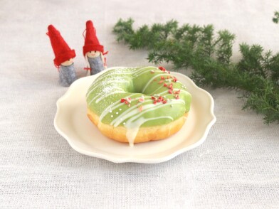 ラズベリーとクランベリーがアクセントのクリームチーズを包み、飾りは雪の積もったツリーをイメージしました。