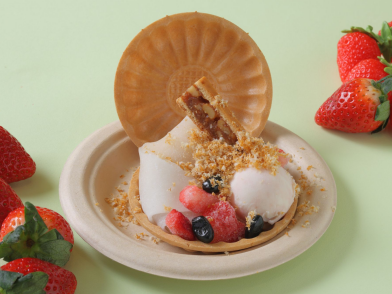 レモンピール入り白餡の苺大福、ストロベリーマスカルポーネアイス、クルミッ子などをモナカの皮で挟みました。