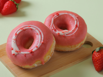 とちあいかのクリームチーズを包み、いちごのグレーズで仕上げました。