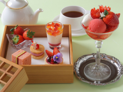 旬のいちごを使用した小菓子といちごを贅沢に使用したミニパフェのセットです。