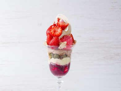 濃厚なチョコレートと瑞々しいいちごが主役のパフェ。 ファクトリー特製のいちごミルクジェラートの滑らかな食感やしっとりと焼き上げた蒸しショコラが絶妙なハーモニーを奏でます。