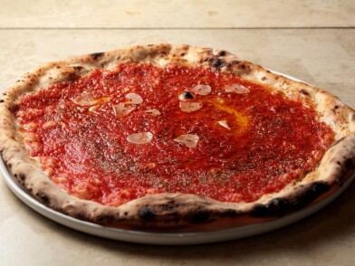 トマトソースのジューシーさと、ニンニク・オレガノの香りが口いっぱいに広がるピッツァです。