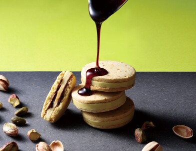 ピスタチオペーストを練りこんだ、ピスタチオチョコをカリッとローストしたピスタチオが香ばしいピスタチオサブレでサンドしました。