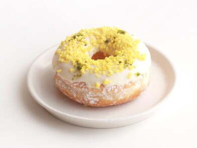アカシアのはちみつのやさしい甘さとレモンピールのさわやかさ香る「ミモザ」をイメージしたドーナツ。